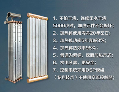 成功研發(fā)升級至第六代全新智能沈陽全導(dǎo)體電鍋爐機組。產(chǎn)品采用全導(dǎo)體加熱變頻技術(shù),節(jié)能設(shè)計,熱效率高達98%以上,水電分離,獨有的故障自檢,防凍防干燒等十大保護;不使用交流接觸器,采用DSP控制模組、工作無聲音,不怕潮濕;采用國內(nèi)正泰原裝配件,穩(wěn)定耐用,智能控制,功率衰減小,比傳統(tǒng)沈陽電鍋爐節(jié)能30%以上“公司能夠生產(chǎn)單機500-6000千瓦大型電鍋爐、大功率電鍋爐、大型工業(yè)電鍋爐、大型電加熱鍋爐”